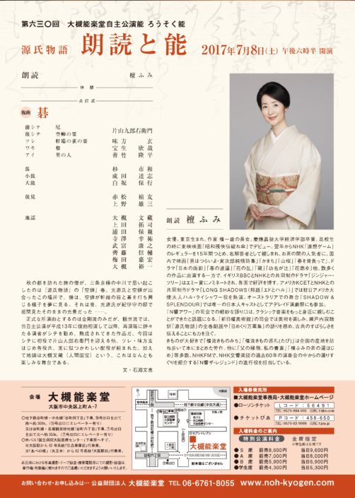 大槻能楽堂自主公演能 “ろうそく能”7月8日(土)18:30~朗読…