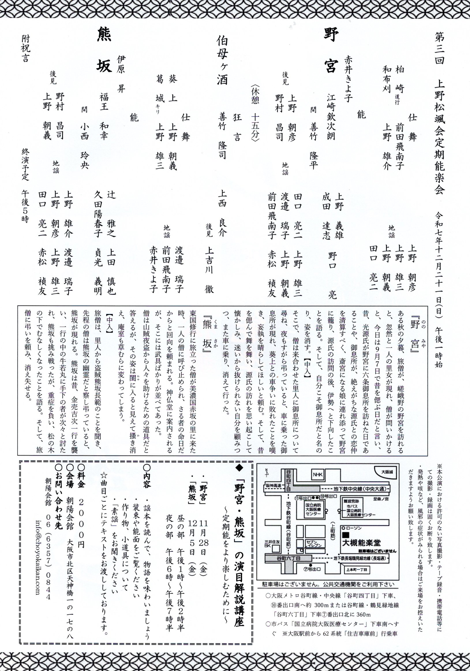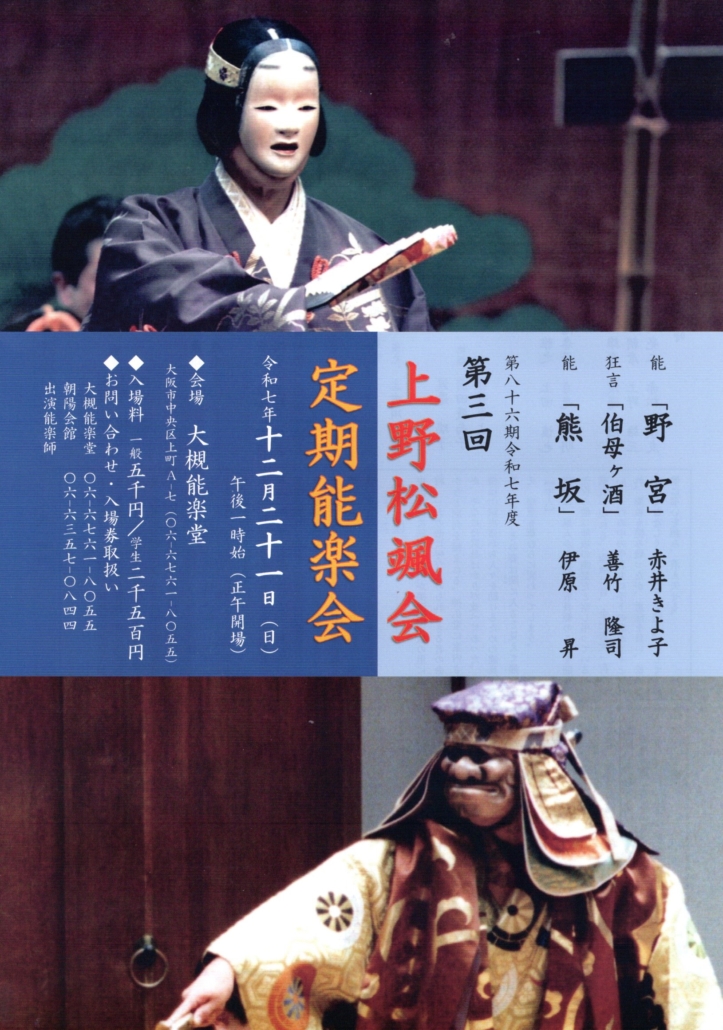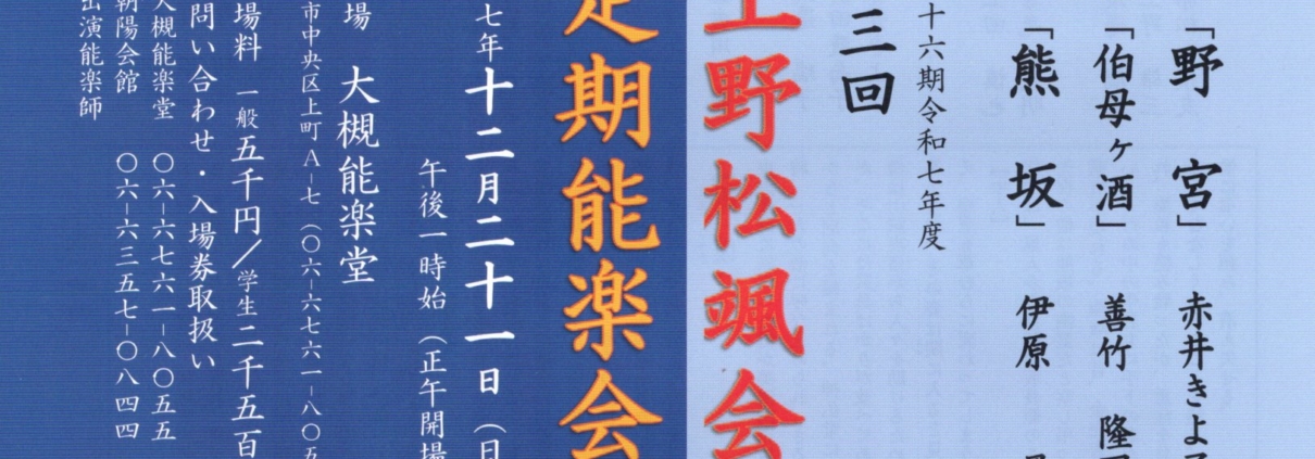 令和7年度上野松颯会定期能楽会 第3回R7年12月21日(日)