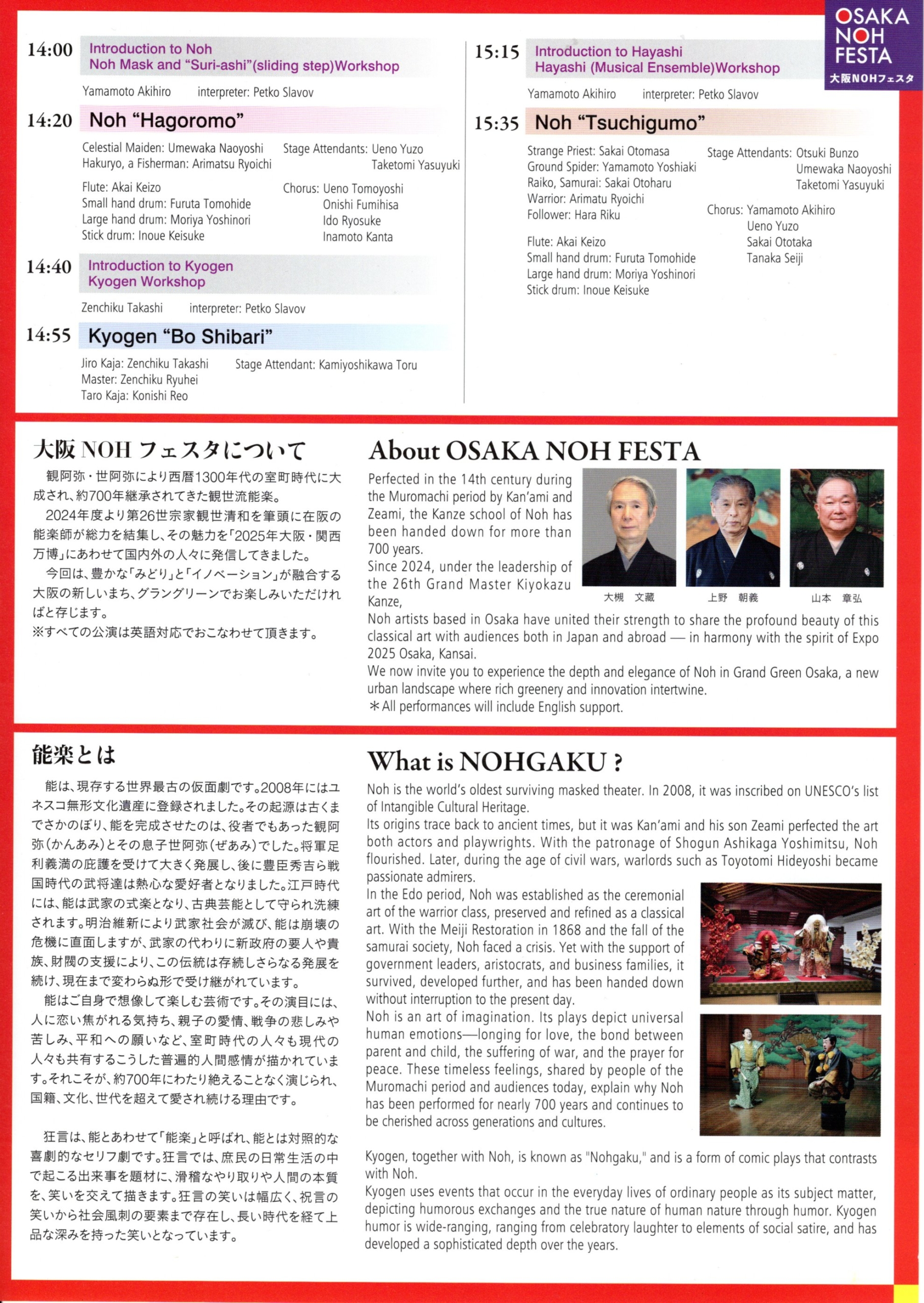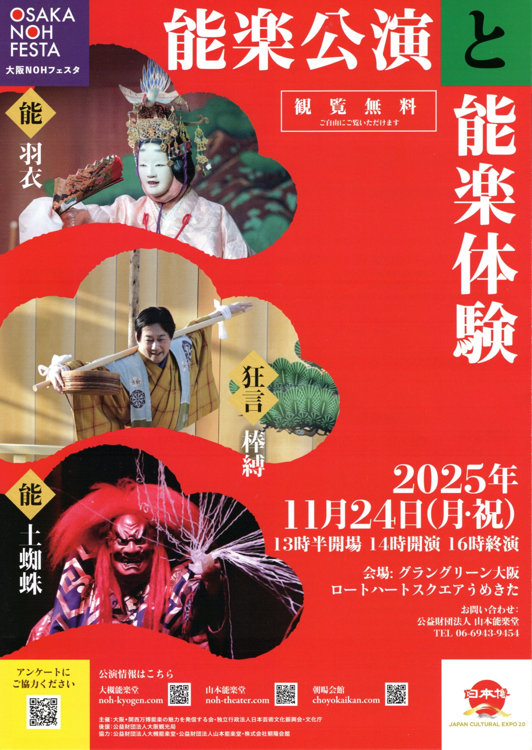 能楽公演と能楽体験 R7年11月24日14時開演2025年10月23日/カテゴリ: 公演情報, 能楽イベント情報 /作成者: u-yuzo能楽公演と能楽体験R7年11月24日14時開演 16時終演会場:グラングリーン大阪 ロートハートスクエアうめきた観覧無料問い合わせ:山本能楽堂 06-6943-9451 https://www.u-yuzo.com/web/wp-content/uploads/2025/11/img20251123_11540378-scaled.jpg 2560 1815 u-yuzo https://www.u-yuzo.com/web/wp-content/uploads/2015/09/top_omote_3.jpg u-yuzo2025-10-23 12:12:592025-11-27 10:30:46能楽公演と能楽体験 R7年11月24日14時開演