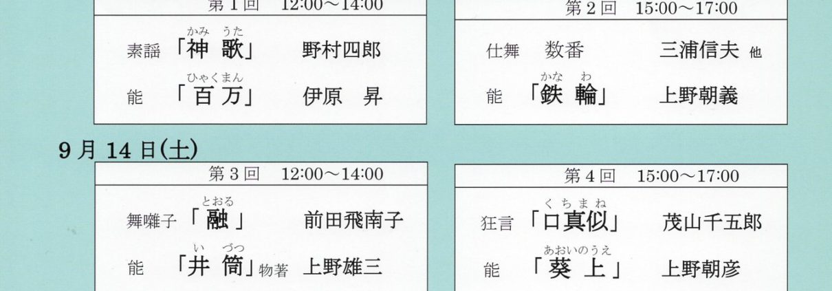 上野松颯会定期能第4回 9月14日(土)15時開演