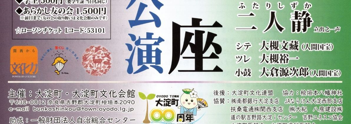第19回 能楽座 大淀町公演 2019年11月16日(土)午後2時開演
