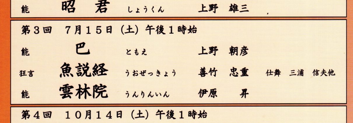 平成29年度 第78期 上野松颯会定期能楽会 年間番組